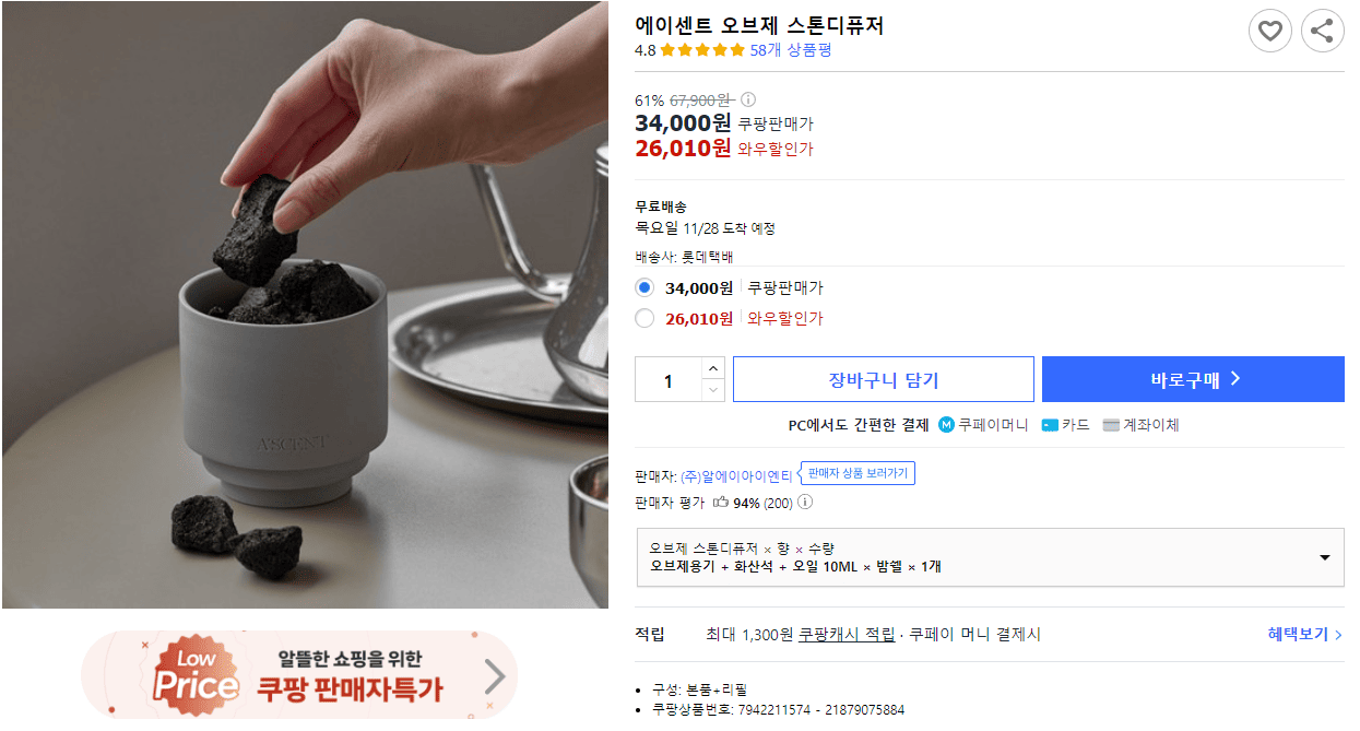 그렇기 떄문에 3만 원대 선물은 오브제 스톤 디퓨저를 추천드립니다,!