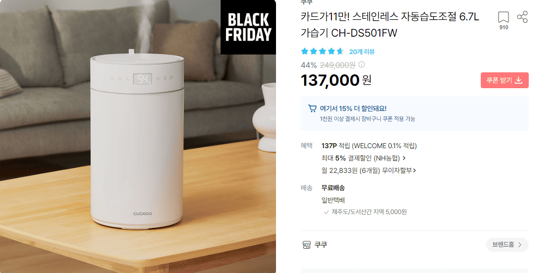 추천 이유는 가습기 치고는 저렴한데 그걸 만든 브랜드는 검증되어 있는 쿠쿠에서 만들었습니다.
