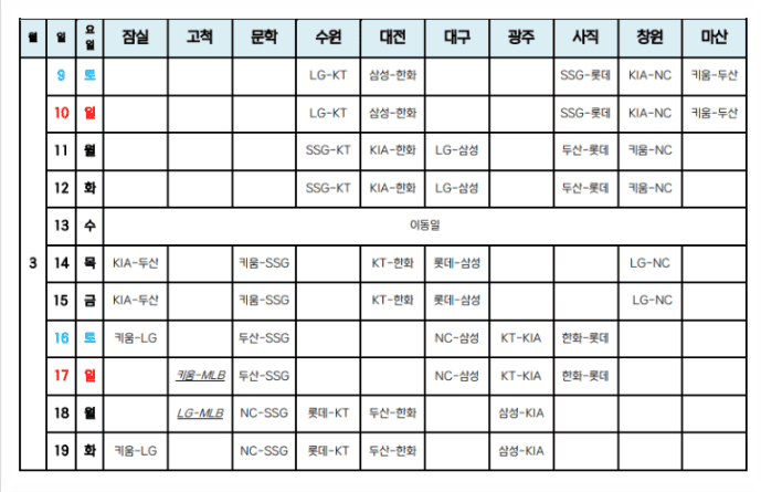 ※ 전체 일정은 KBO 공식 홈페이지에서 확인 가능